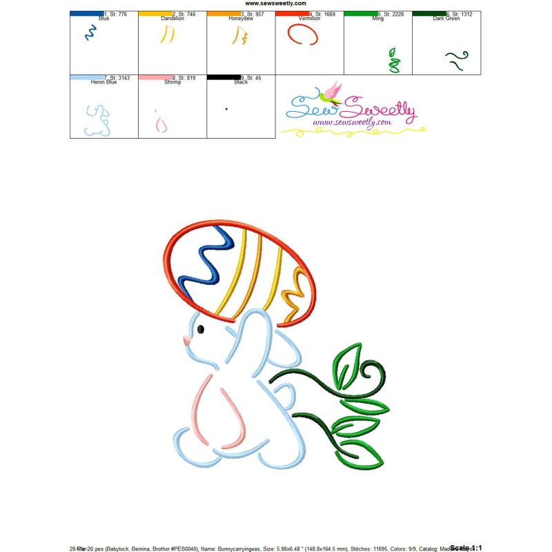Bunny Carrying Easter Egg-02 Machine Embroidery Design Pattern For Easter.