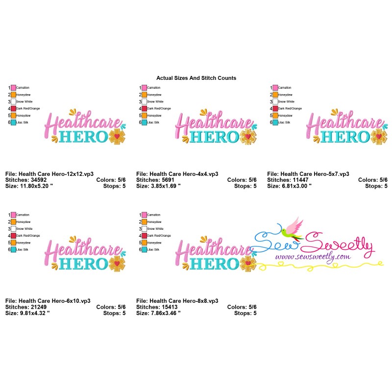 Healthcare Hero Medical Lettering Machine Embroidery Design Pattern For Medical Projects.