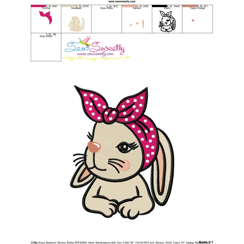 Bandana Easter Bunny Machine Embroidery Design Pattern For Easter.