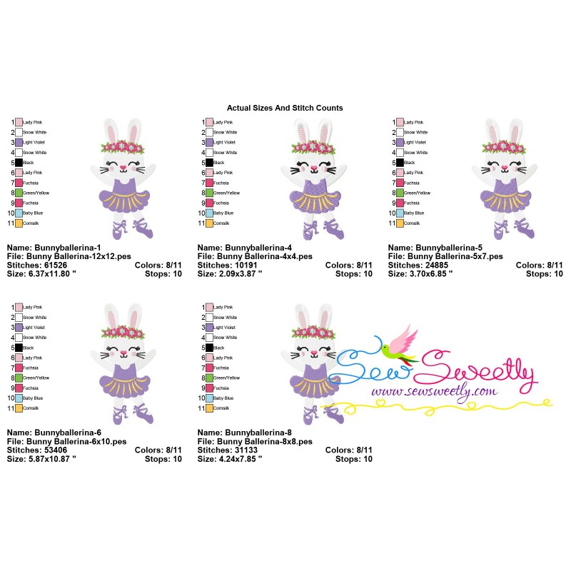 Easter Bunny Ballerina Machine Embroidery Design Pattern For Easter.