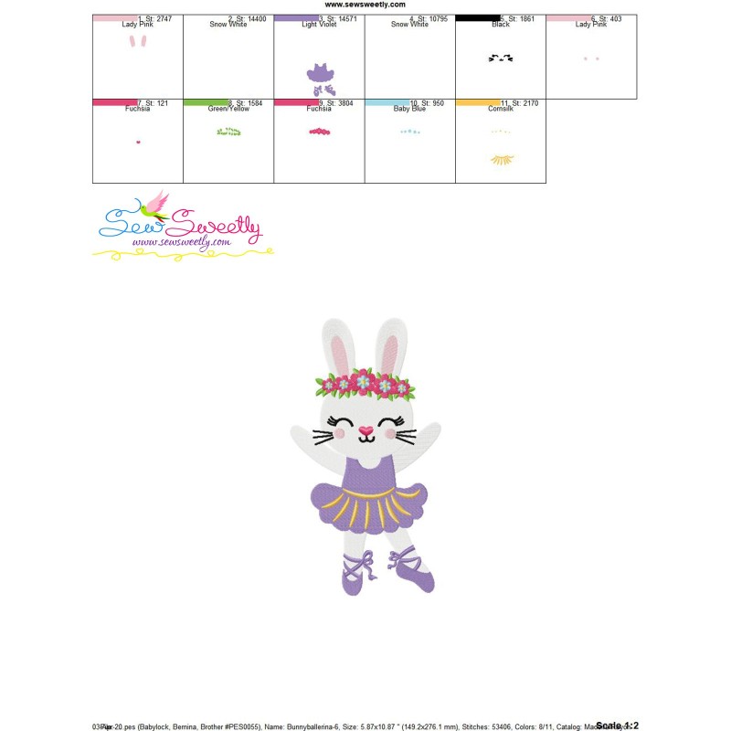Easter Bunny Ballerina Embroidery Design Pattern-2