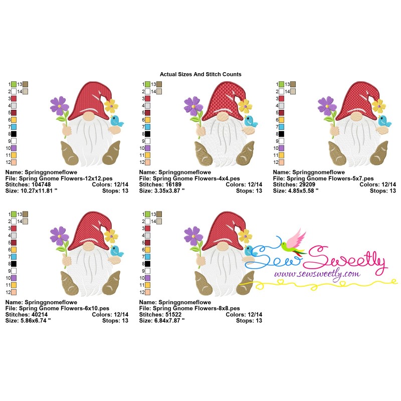 Spring Gnome Flowers Machine Embroidery Design Pattern For Fairytale Embroidery Projects.