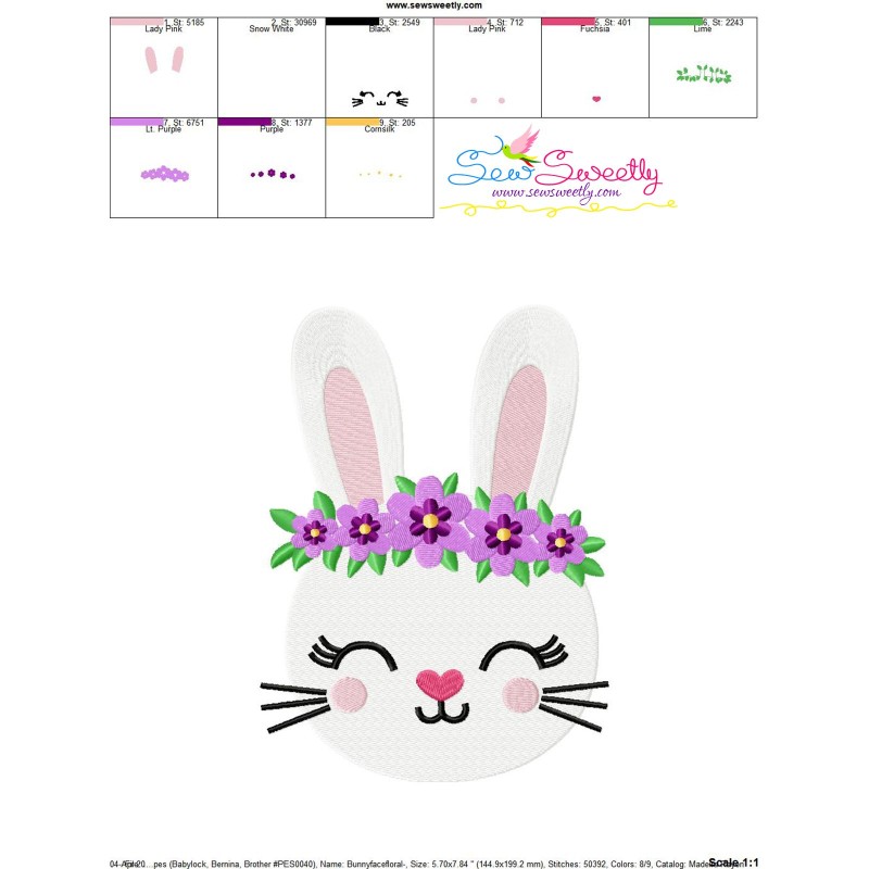 Easter Bunny Face Floral Machine Embroidery Design Pattern For Easter.