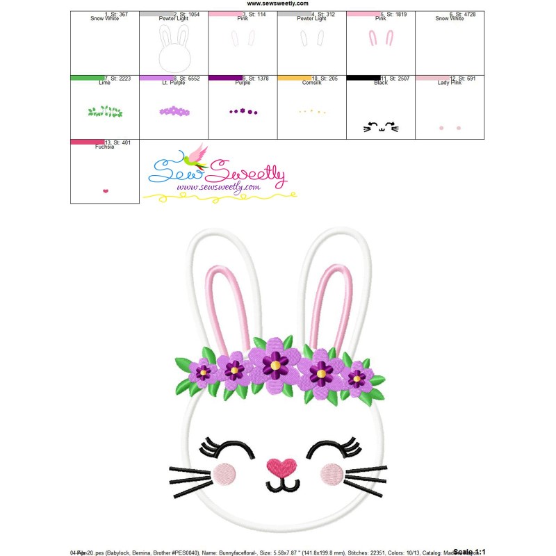Easter Bunny Face Floral Applique Embroidery Design Pattern For Easter.