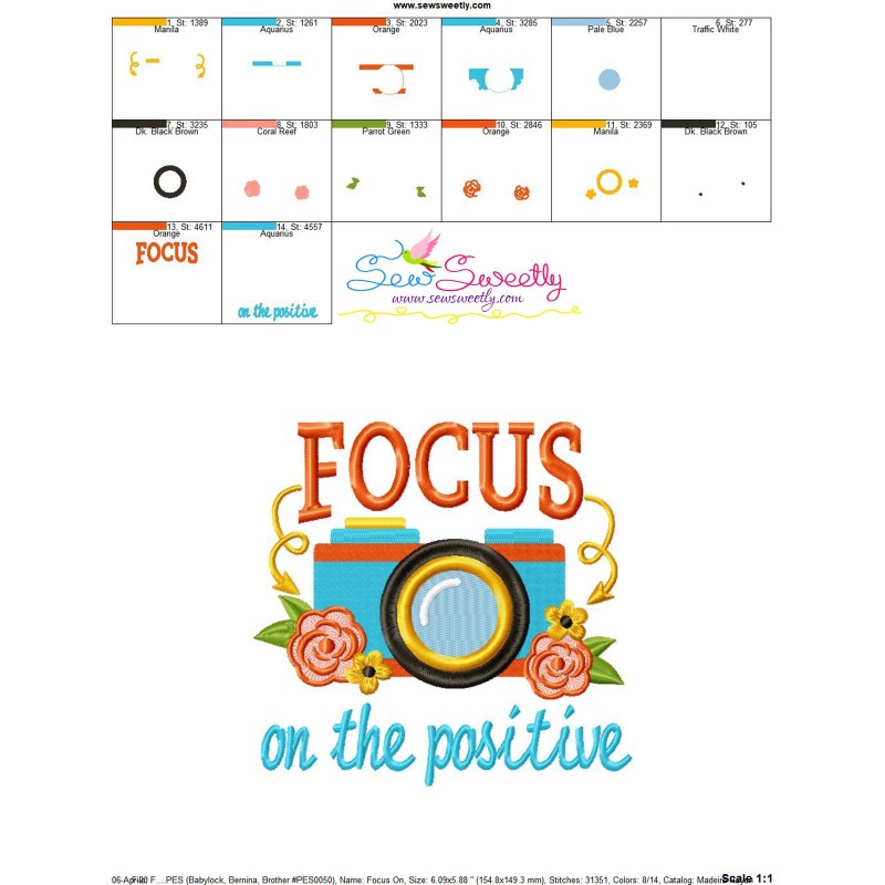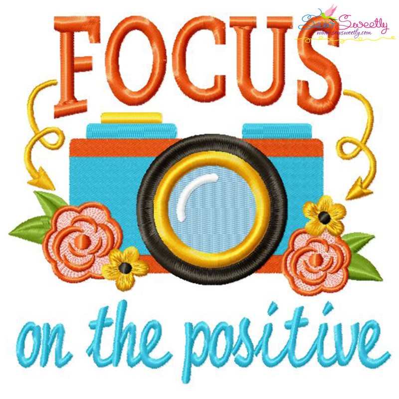 Focus On The Positive Floral Camera Lettering Embroidery Design Pattern-1