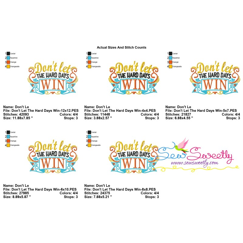 Don't Let The Hard Days Win Motivational Quote Machine Embroidery Design Pattern.