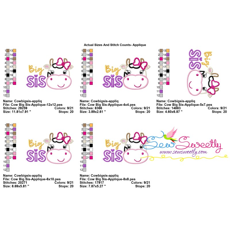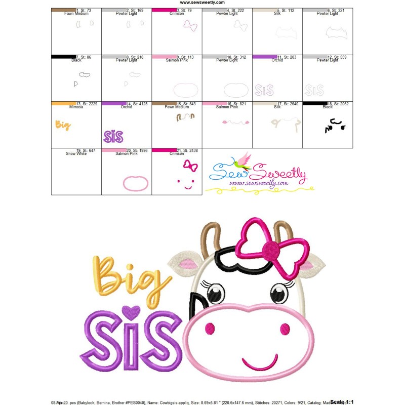 Cow Big Sis Applique Embroidery Design Pattern For Big Sister Embroidery Projects.