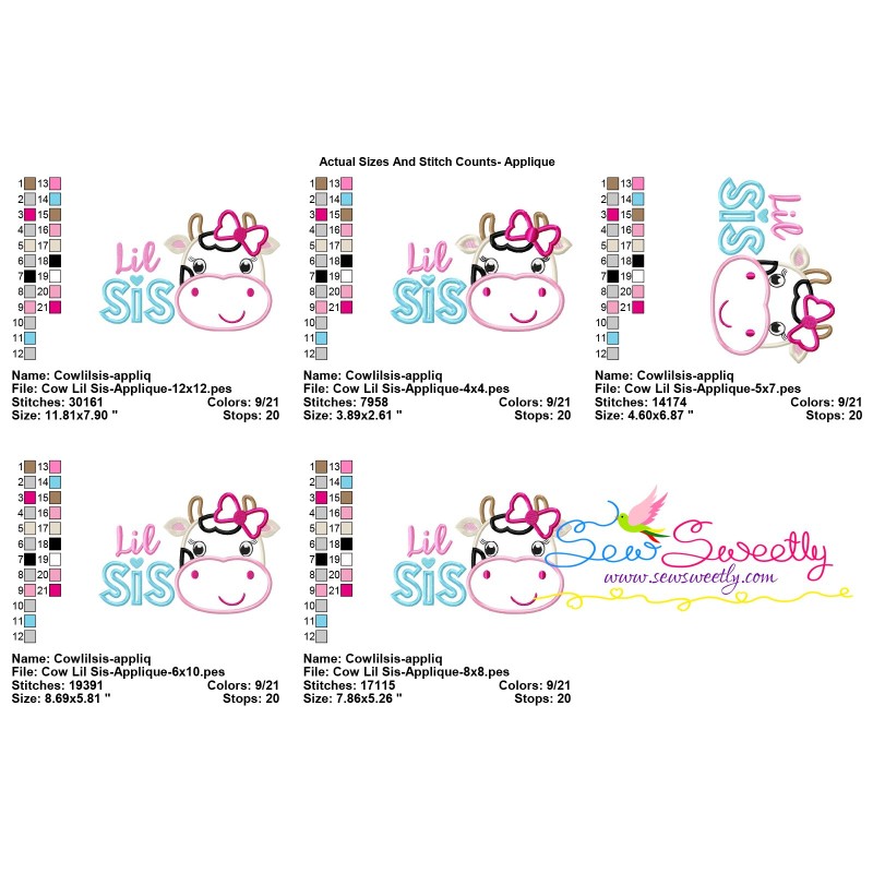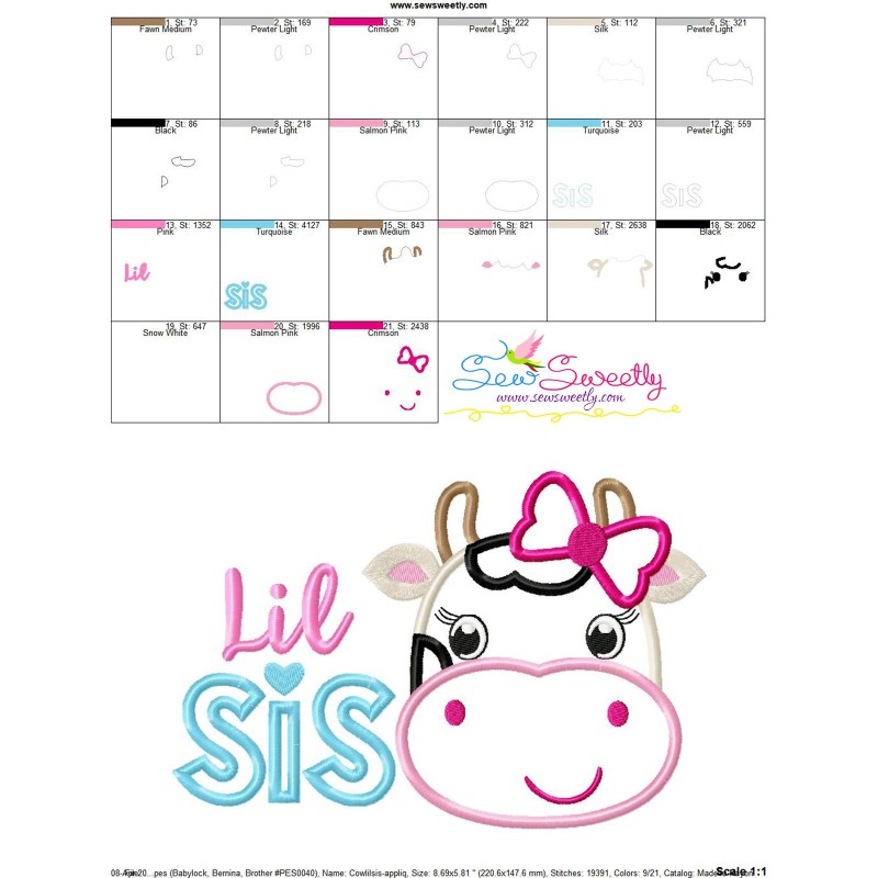 Cow Lil Sis Applique Embroidery Design Pattern For Little Sister Embroidery Projects.
