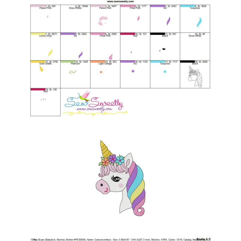 Cute Unicorn Face Floral Embroidery Design Pattern
