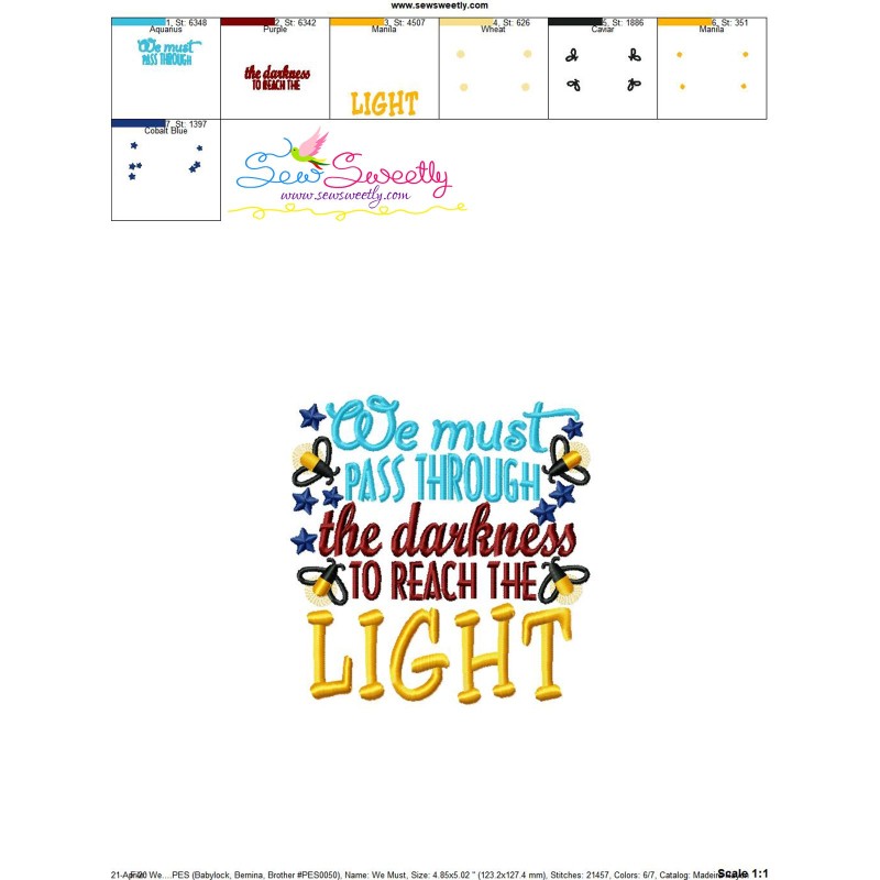 We Must Pass Through The Darkness To Reach The Light Motivational Quote Machine Embroidery Design Pattern.
