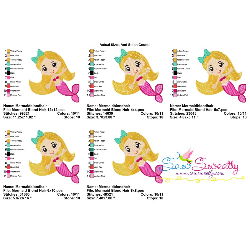 Baby Mermaid Blond Hair Machine Embroidery Design Pattern For Sea Life Machine Embroidery Projects.