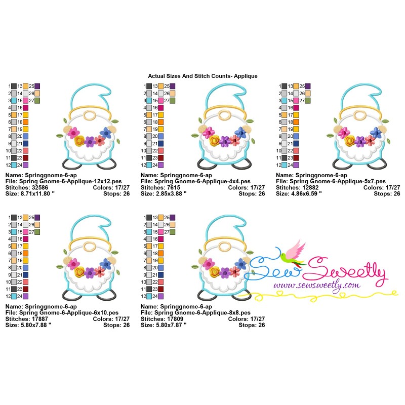 Spring Gnome Flower Wreath Applique Design Pattern-1