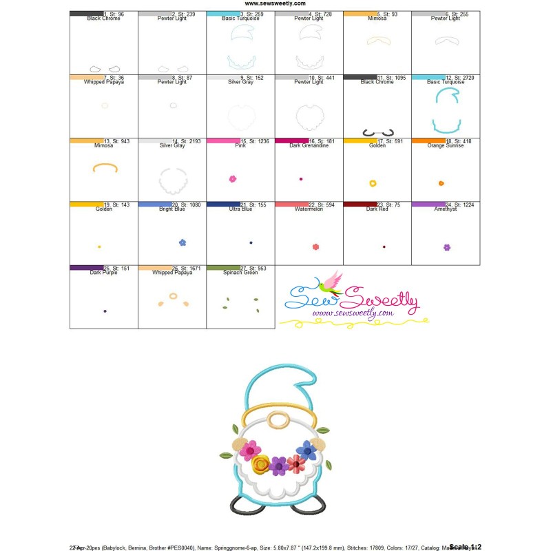 Gnome Spring Flowers Embroidery Design Pattern-1