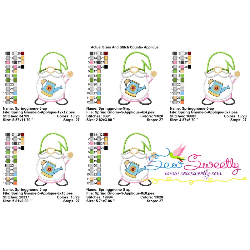 Spring Gnome Watering Can Applique Design Pattern-3