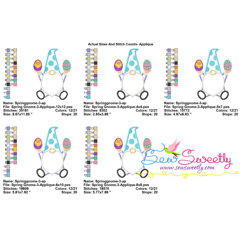 Spring Gnome Easter Eggs Applique Design Pattern-3