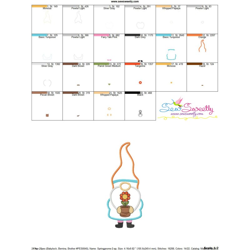 Spring Gnome Flower Pot Applique Design Pattern-2