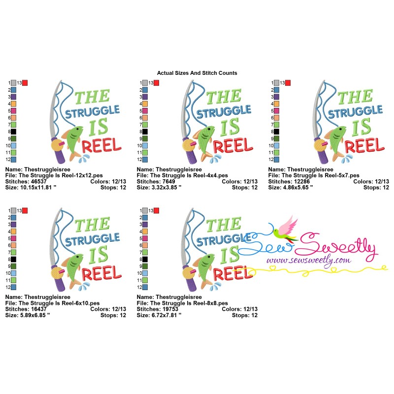 The Struggle Is Reel Fishing Lettering Machine Embroidery Design Pattern For Fishing Embroidery Projects.