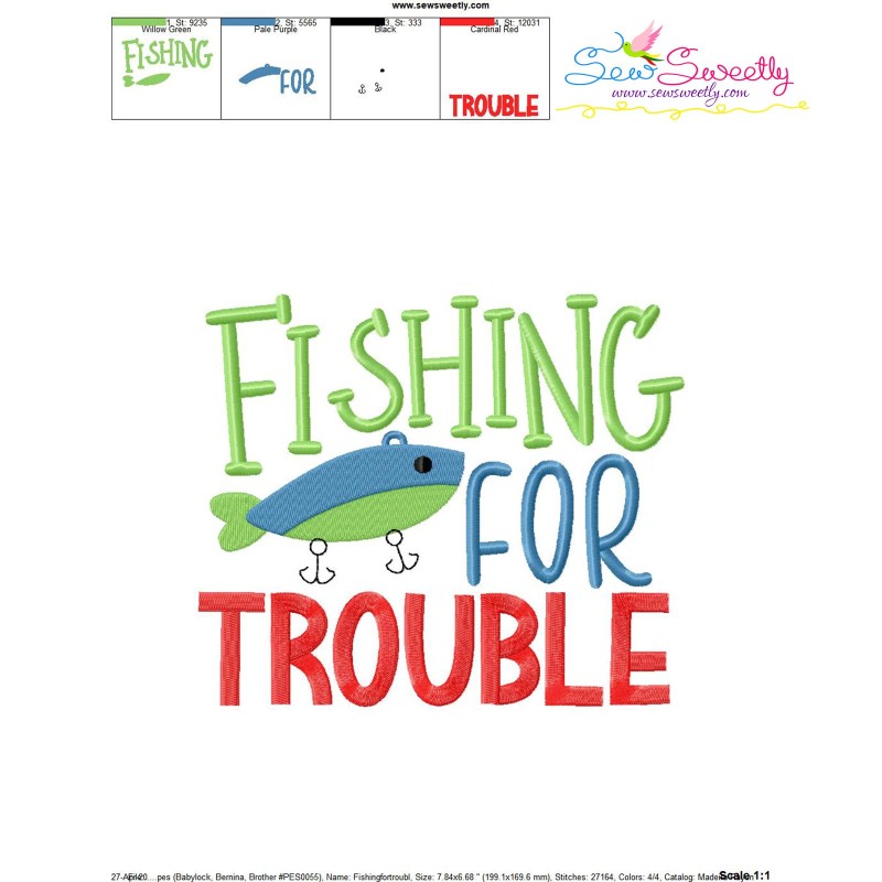 Fishing For Trouble Lettering Machine Embroidery Design Pattern For Fishing Embroidery Projects.