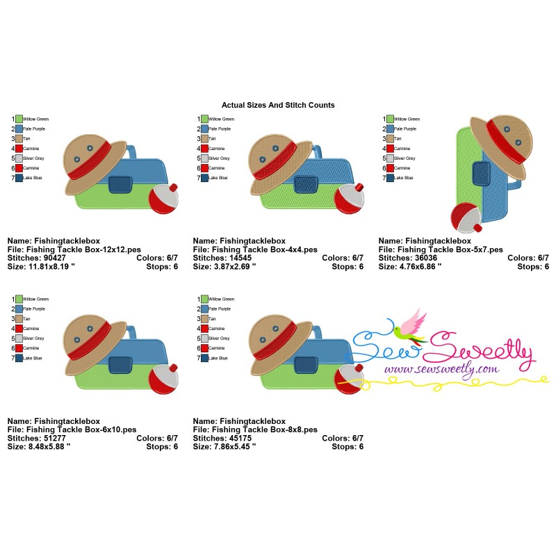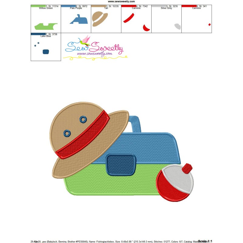 Fishing Tackle Box Machine Embroidery Design Pattern For Fishing Embroidery Projects.