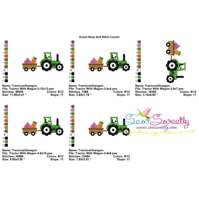 Farm Tractor With Wagon-3 Machine Embroidery Design Pattern For Farming Embroidery Projects.