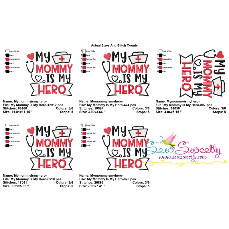 My Mommy Is My Hero Medical Lettering Machine Embroidery Design Pattern For Nursing And Mother's Day Embroidery Projects.