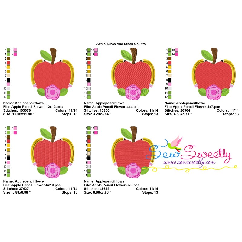 Apple Pencil Flower Machine Embroidery Design Pattern For Back To School Embroidery Projects.