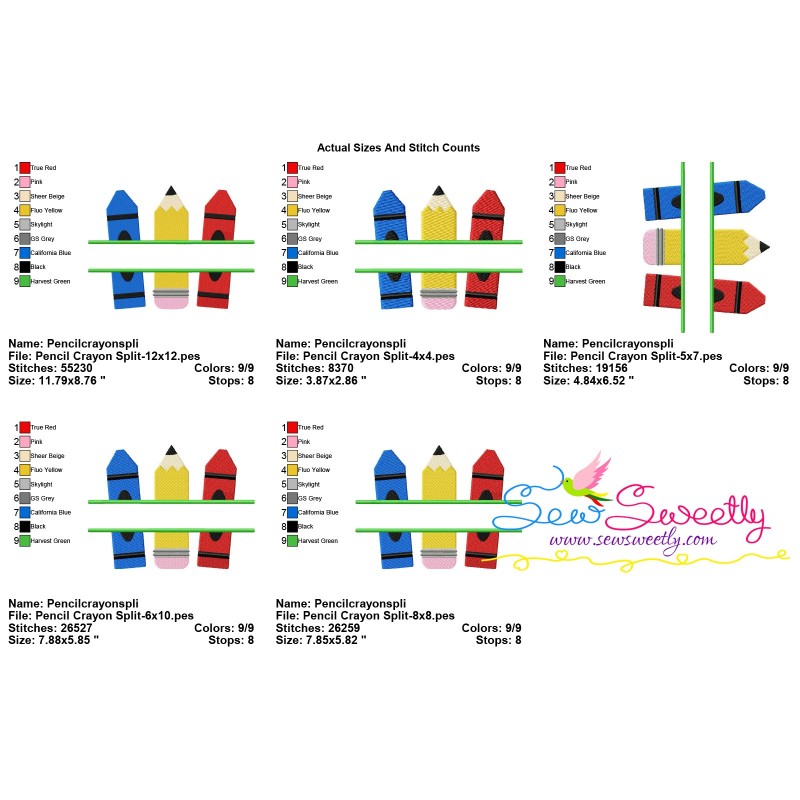 Pencil Crayon Split Machine Embroidery Design Pattern For Back To School Embroidery Projects.