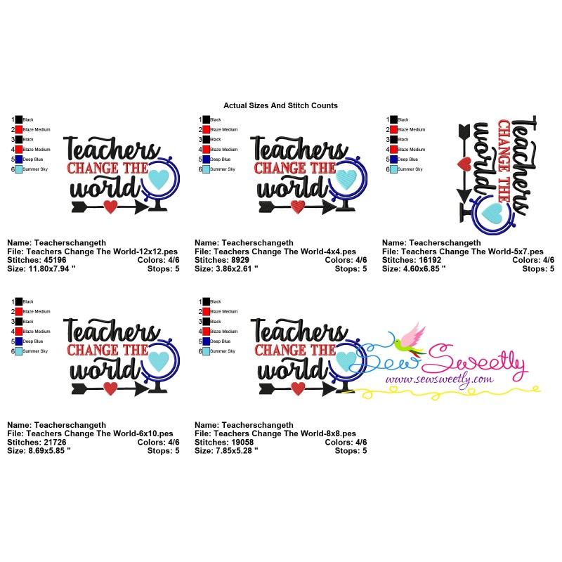Teachers Change The World School Lettering Machine Embroidery Design Pattern For School And Teaching Embroidery Projects.
