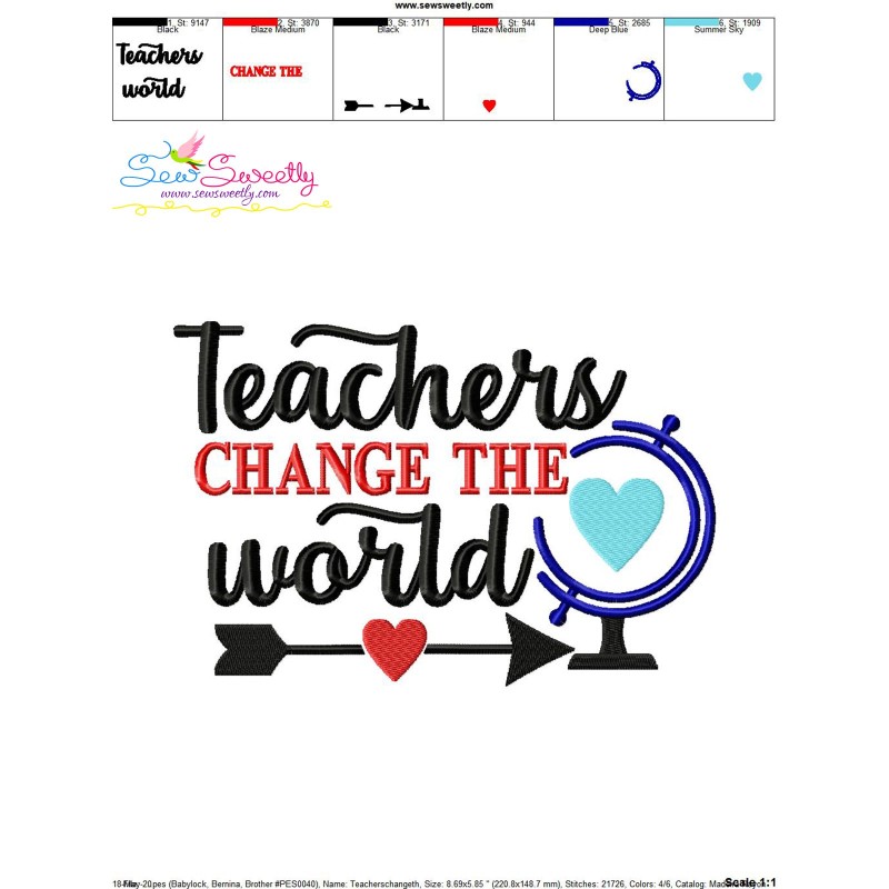 Teachers Change The World School Lettering Embroidery Design Pattern-1