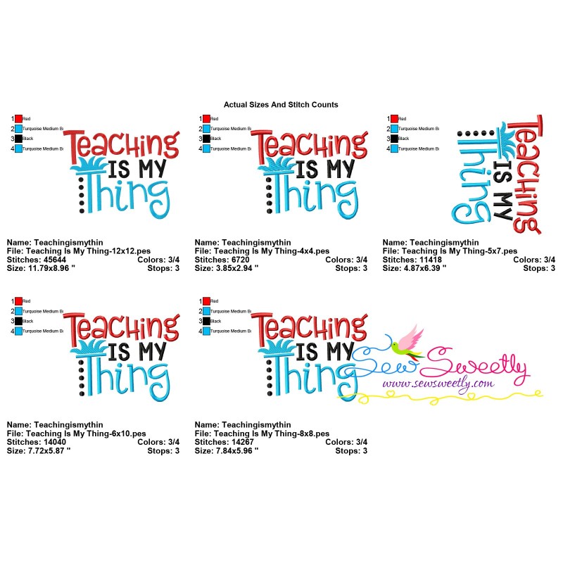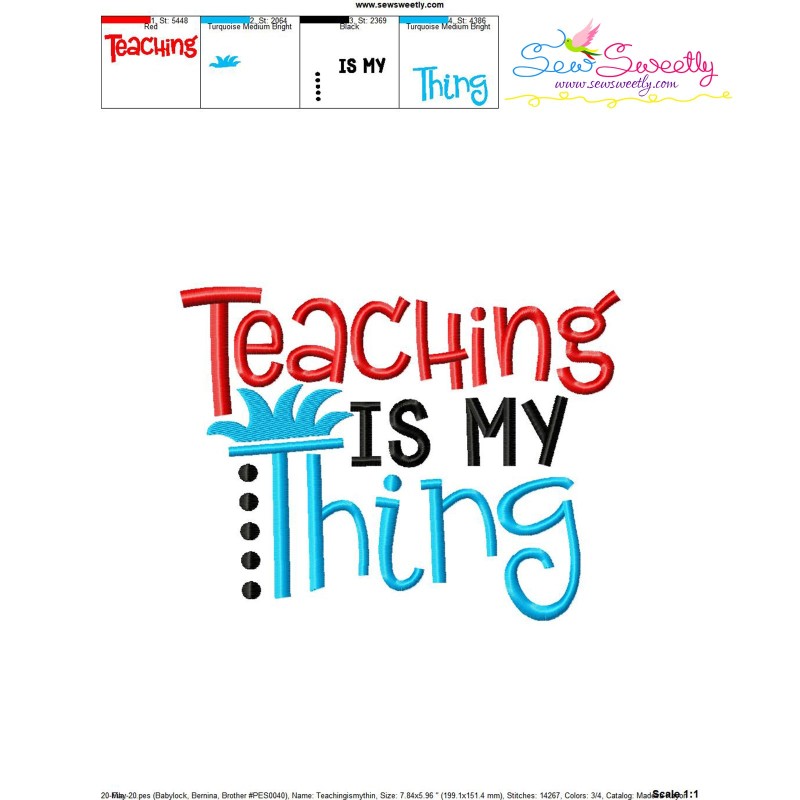 Teaching Is My Thing American Theme Lettering Embroidery Design Pattern
