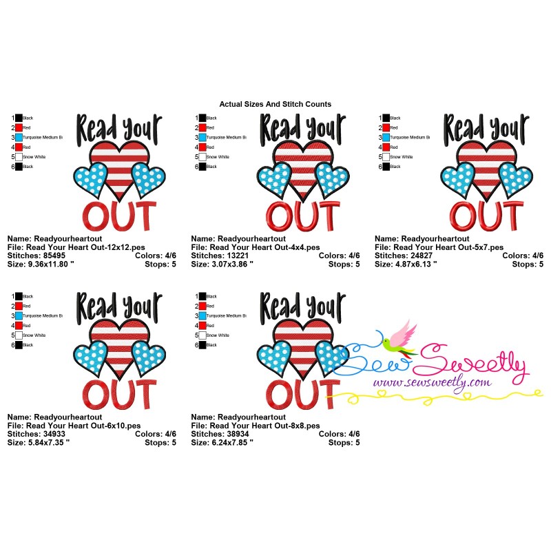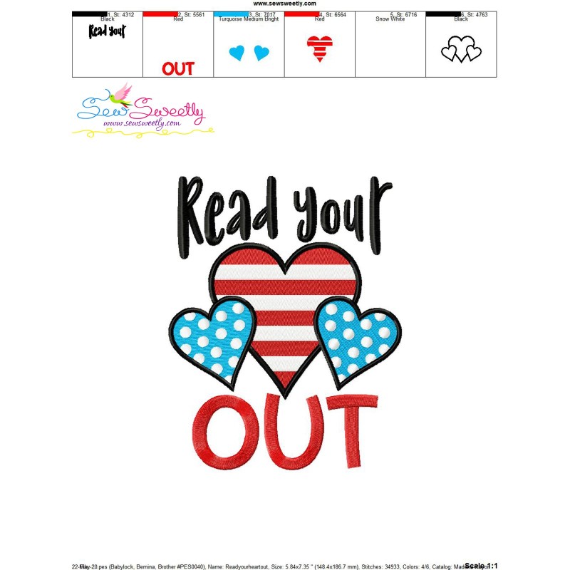 Read Your Heart Out American Theme School Lettering Embroidery Design Pattern-1