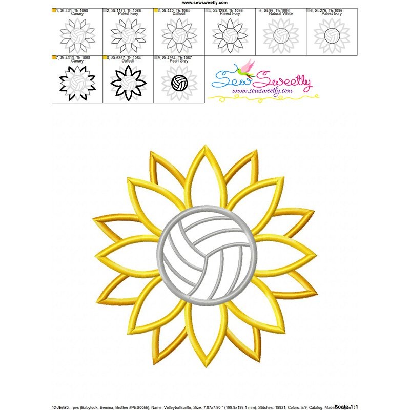 Volleyball Sunflower Applique Embroidery Design Pattern For Volleyball Sports Projects.