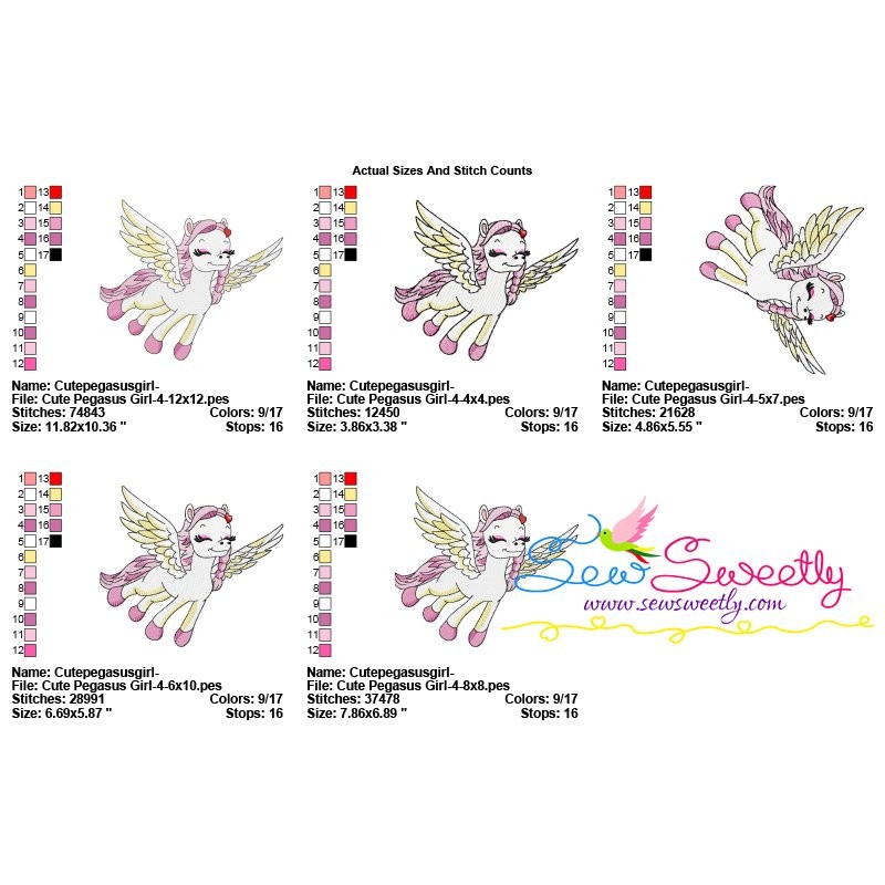 Cute Pegasus Girl-4 Embroidery Design Pattern