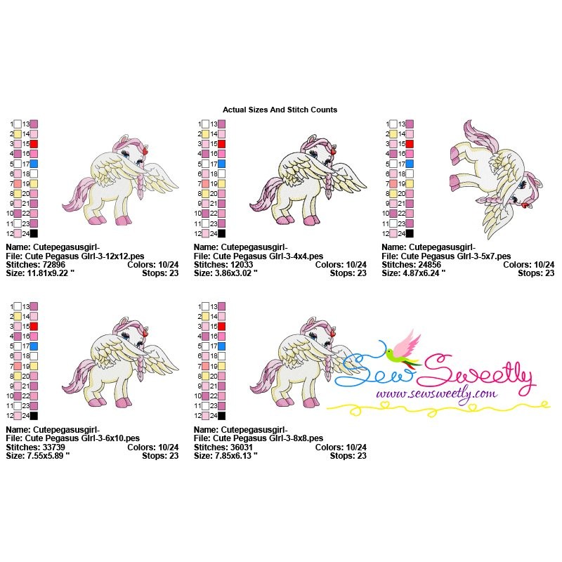 Cute Pegasus Girl-3 Embroidery Design Pattern-3