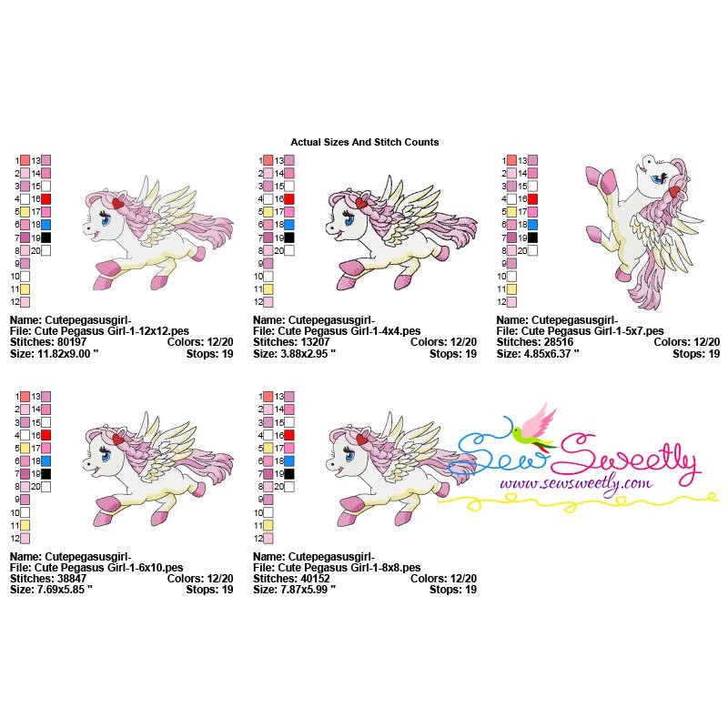 Cute Pegasus Girl-1 Embroidery Design Pattern-3
