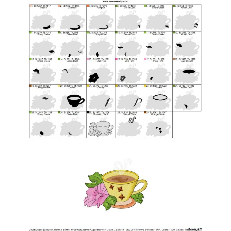 Cup And Flowers-4 Embroidery Design Pattern-2