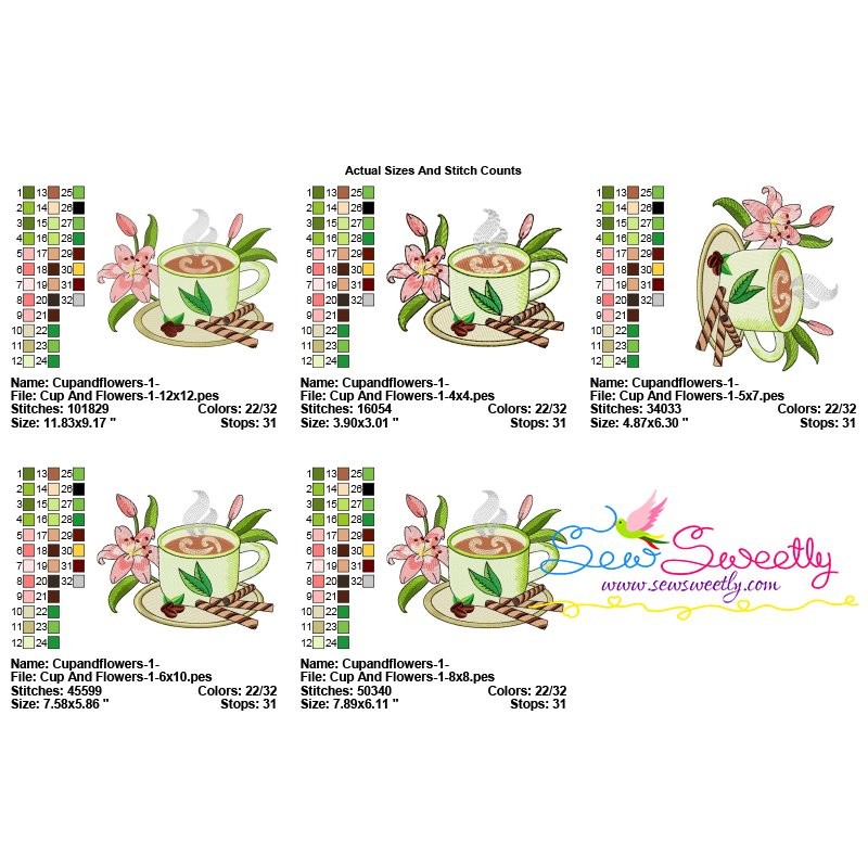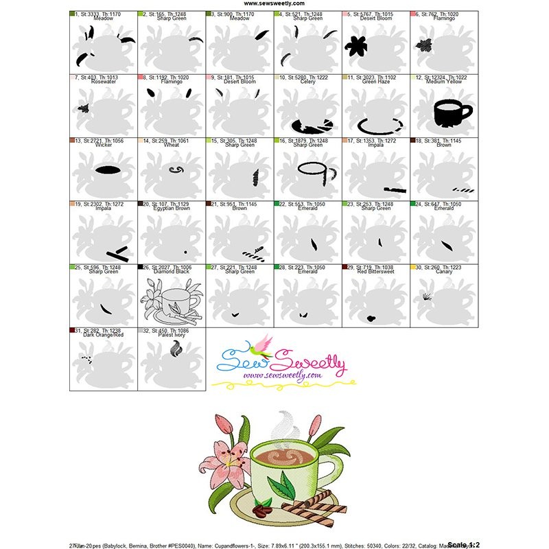 Cup And Flowers-4 Embroidery Design Pattern-1