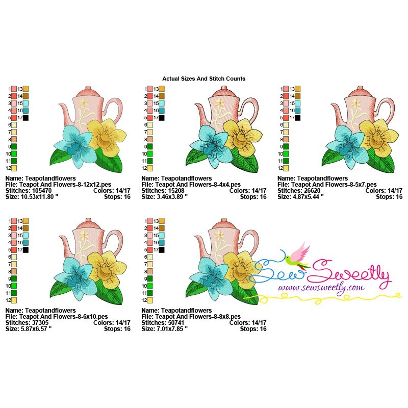 Teapot And Flowers-8 Embroidery Design Pattern-1
