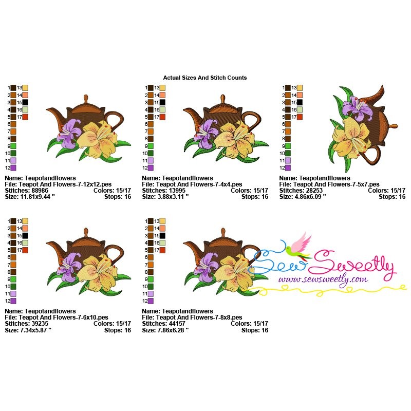 Teapot And Flowers-7 Embroidery Design Pattern