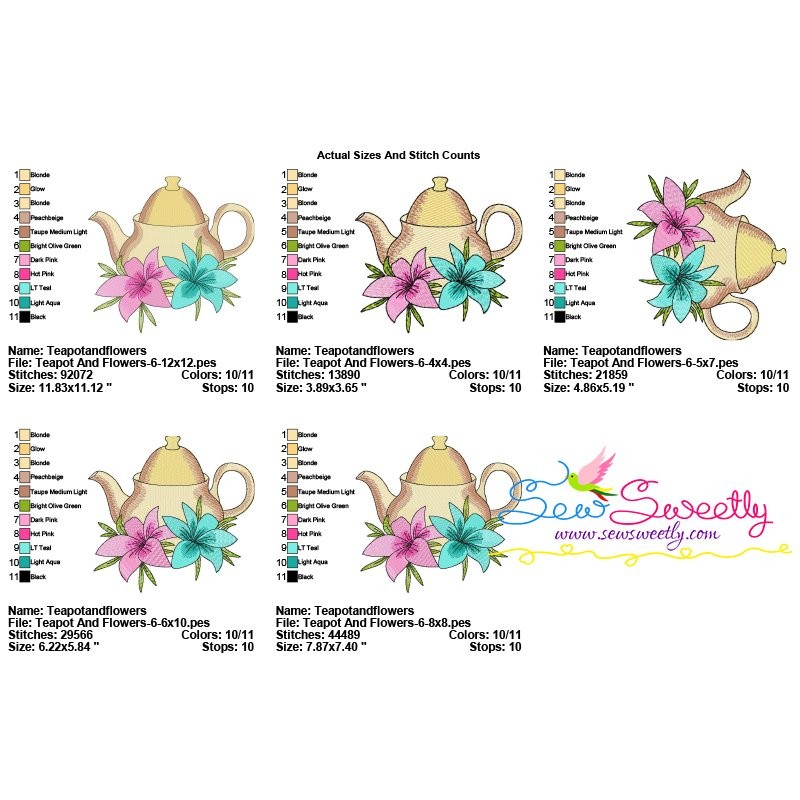 Teapot And Flowers-6 Embroidery Design Pattern-1