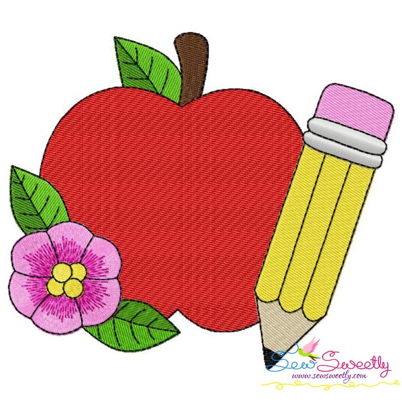 Apple Pencil Flower-2 Machine Embroidery Design Pattern For Back To School Embroidery Projects.