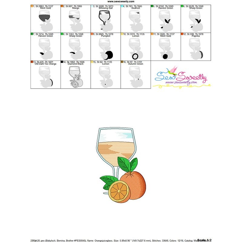 Orange Juice Glass Embroidery Design Pattern-1