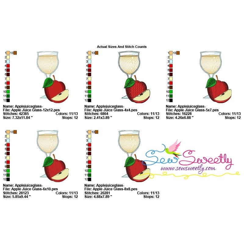 Apple Juice Glass Machine Embroidery Design Pattern For Summer Embroidery Projects.