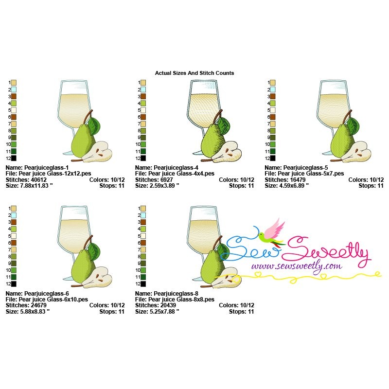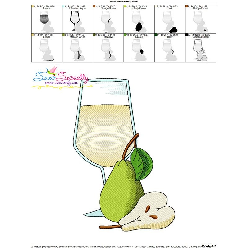 Pear Juice Glass Machine Embroidery Design Pattern For Summer Embroidery Projects.