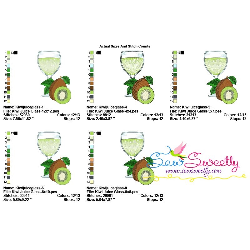 Kiwi Juice Glass Machine Embroidery Design Pattern For Summer Embroidery Projects.