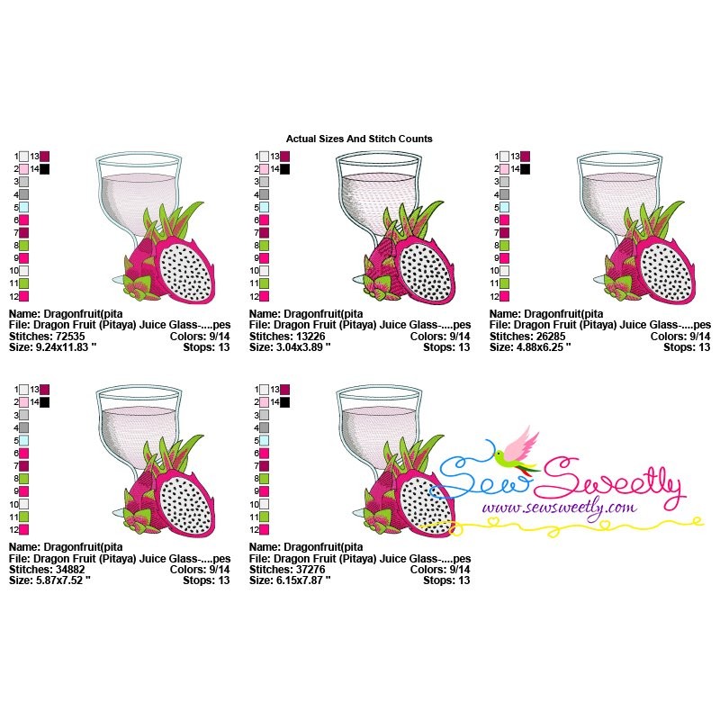 Dragon Fruit (Pitaya) Juice Glass Embroidery Design Pattern-2