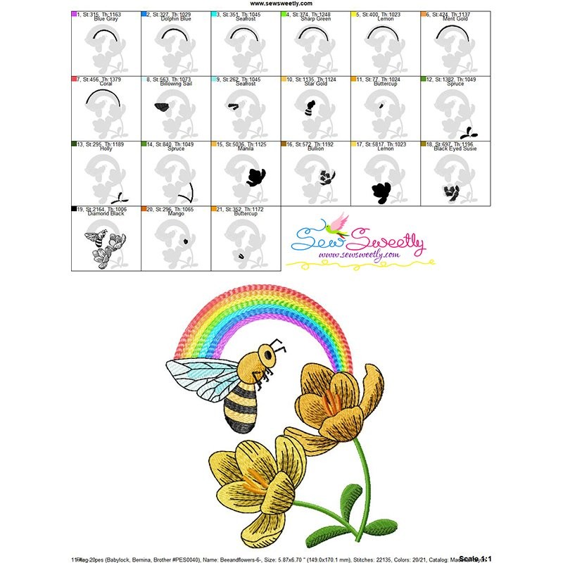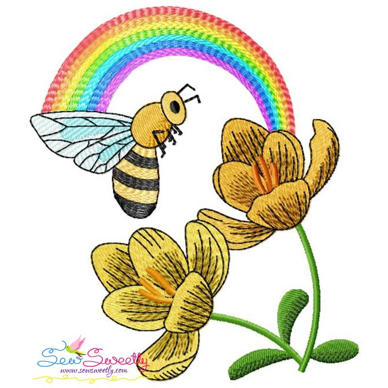 Bee Flowers And Rainbow-6 Embroidery Design Pattern-1