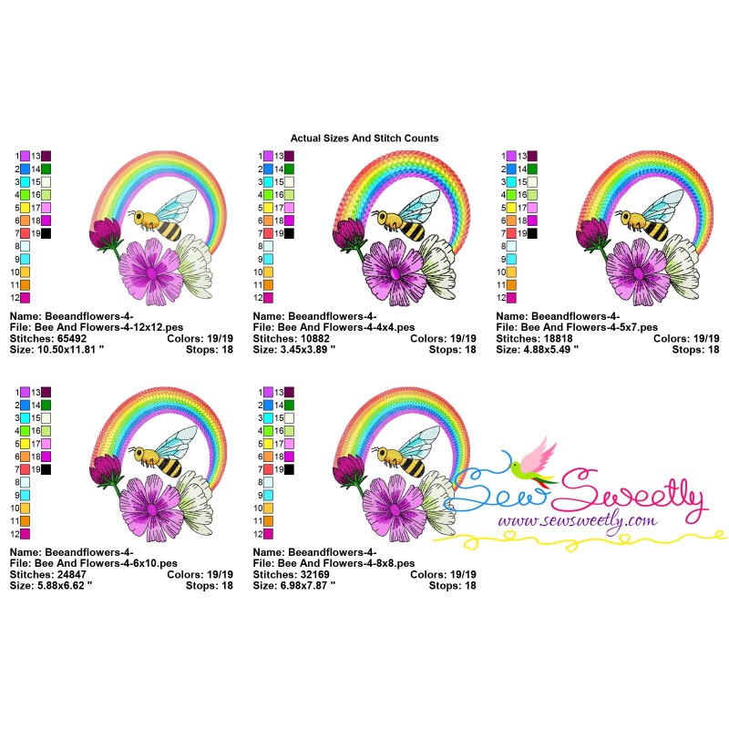 Bee Flowers And Rainbow-4 Machine Embroidery Design Pattern For Spring Season Embroidery Projects.