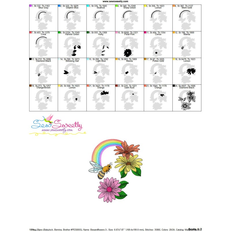 Bee Flowers And Rainbow-3 Embroidery Design Pattern-2