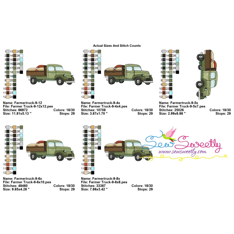 Farmer Truck-9 Machine Embroidery Design Pattern For Farming Embroidery Projects.